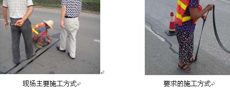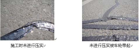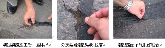 裂縫在潮濕狀態(tài)下施工,導(dǎo)致貼縫帶不能很好與路面粘合。