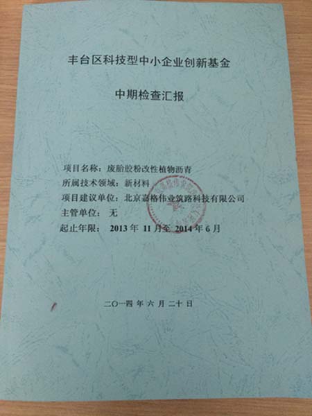 嘉格偉業(yè),其科研項(xiàng)目【廢胎膠粉改性植物瀝青2013年末獲得了北京市豐臺(tái)區(qū)科技型中小企業(yè)創(chuàng)新基金支持項(xiàng)目,并獲得資金支持350000元,專項(xiàng)用于廢胎膠粉改性植物瀝青研究。至今項(xiàng)目研發(fā)過半,年中成果匯報(bào)工作正在有條不紊的進(jìn)行中。技術(shù)部專門召開了專門會(huì)議,部署了中期總結(jié)匯報(bào)工作人員分工及時(shí)間要求。