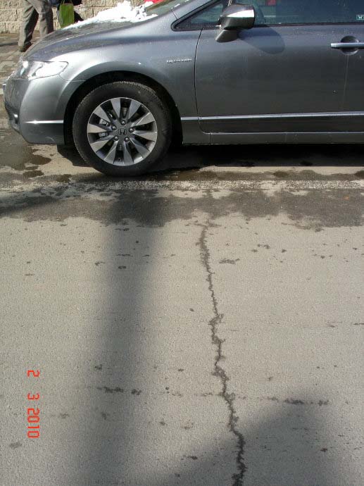(2)溫度變化  氣溫大幅下降時瀝青路面逐漸收縮變硬,當收縮的拉應力超過瀝青混凝土的抗拉強時則產(chǎn)生開裂。此外,基層的收縮或面層與基層之間附著力不夠,都會產(chǎn)生橫向裂縫。
