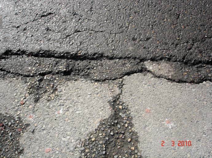 (2)在已開裂的舊瀝青、舊水泥路面上加罩瀝青混凝土面層時,原路面的裂縫受氣溫的變化會繼續(xù)擴展,使處于溫度收縮的新瀝青面層增加應力,至使新鋪層在舊裂縫處開裂。
