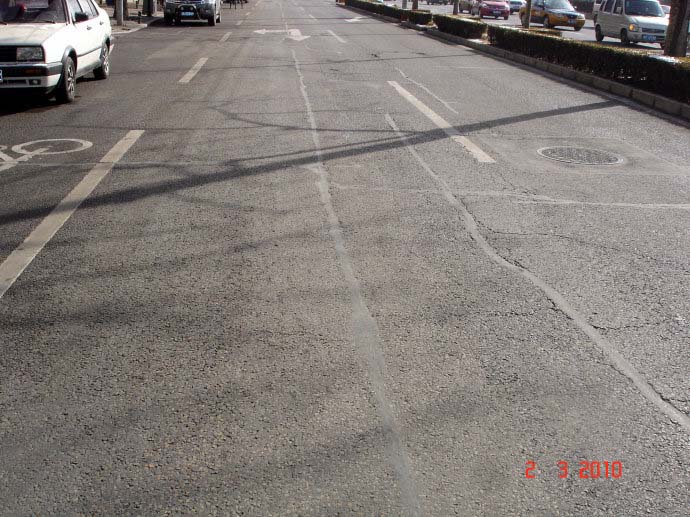 (3)施工不當 ,如路基沉降時間短(我們喜好于在重大節(jié)日前領導剪彩獻禮)及趕工期。我們還自豪地講,別人十五年完成的工程,我們在不到二年的時間就完成了。另外,攤鋪瀝青混凝土時其接縫不是熱連接,冷接縫造成天然的橫向或縱向接縫。