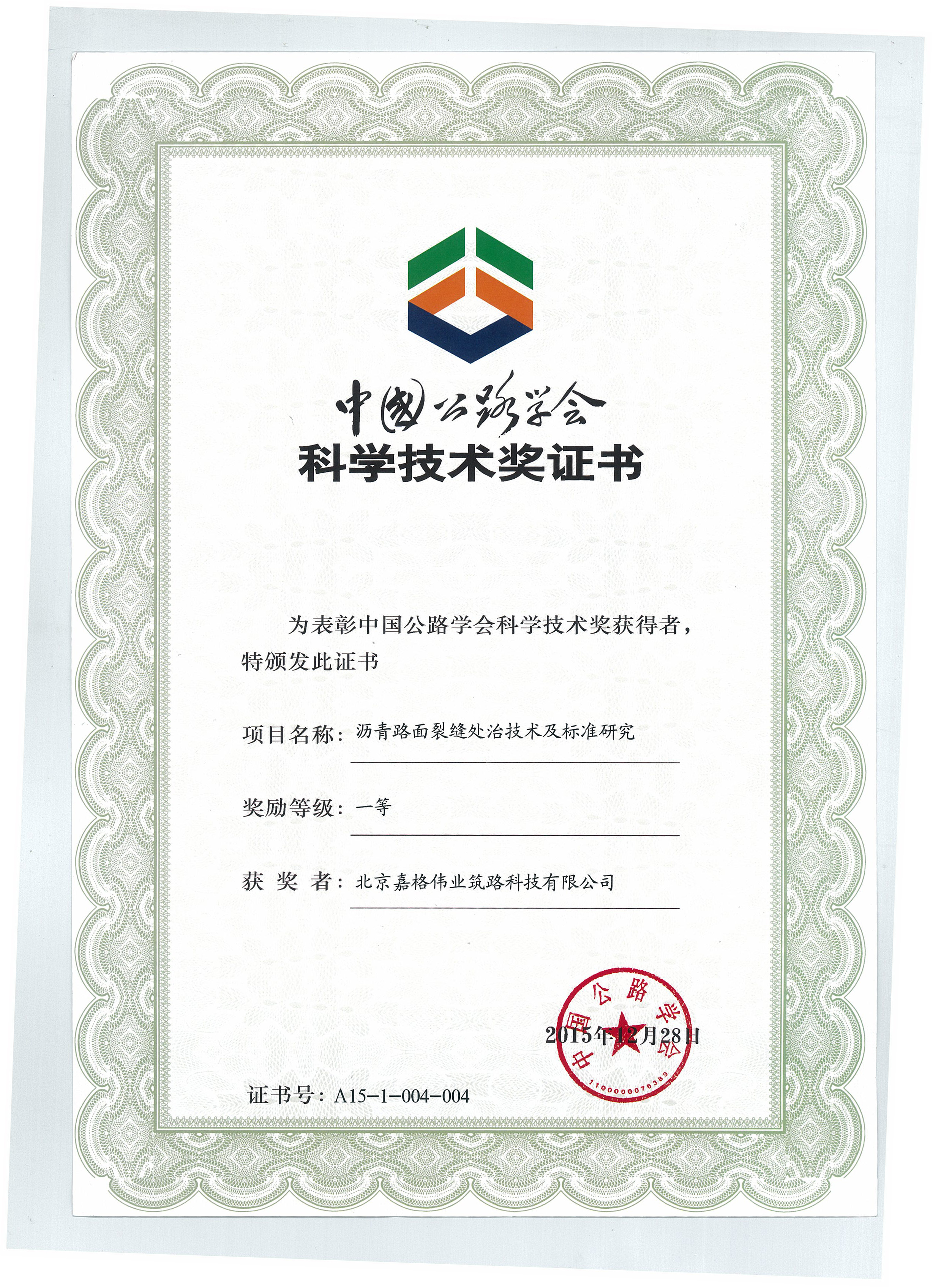 在這里,嘉格能夠很有自信的拍拍胸脯,告訴大家,嘉格作為國家高新技術(shù)企業(yè),也是2015年灌縫膠行業(yè)標準起草單位,而且廠家的“瀝青路面裂縫處治技術(shù)及標準研究”榮獲了中國公路學(xué)會科學(xué)技術(shù)獎一等獎,擁有瀝青路面裂縫耐久處置成套技術(shù)與產(chǎn)品,產(chǎn)品擁有高效、嚴謹?shù)募夹g(shù)支撐,質(zhì)量與性能定有保障。